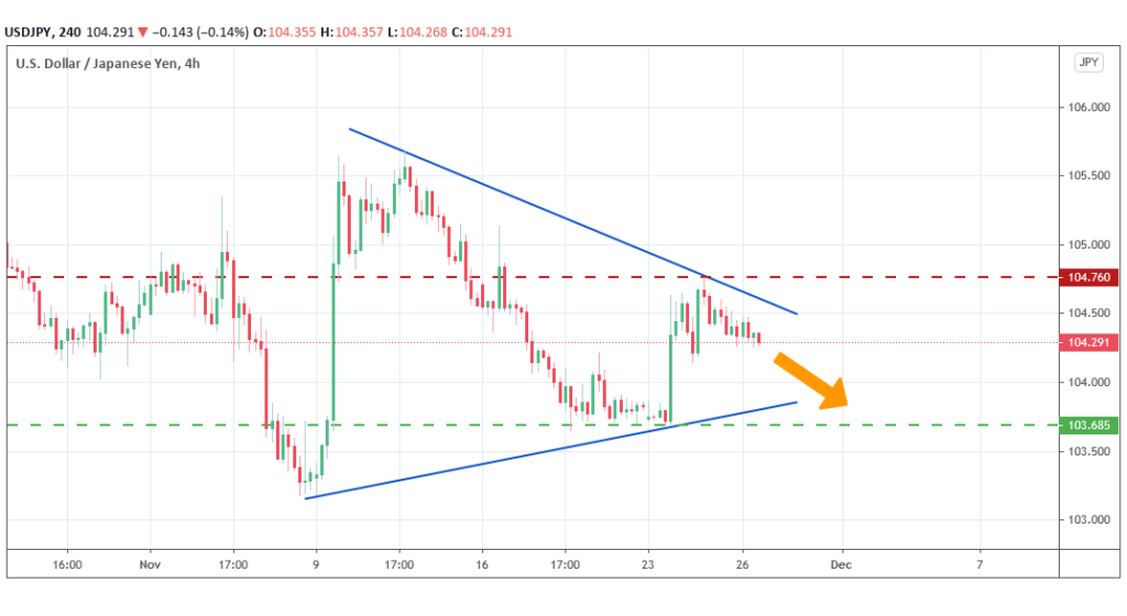 USDJPY คู่นี้เป็น pattern แบบ Triangle โดยรูปแบบราคาจาก Time frame 4 ชั่วโมง