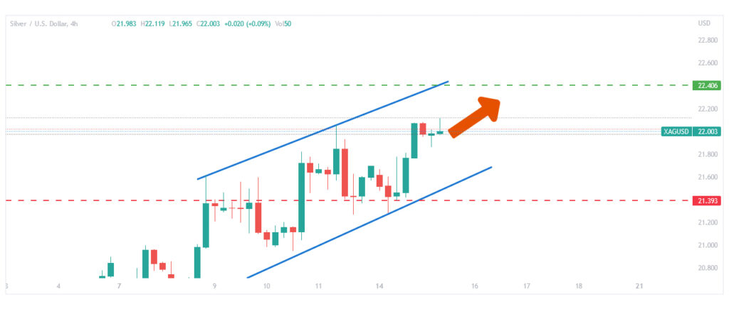 XAGUSD คู่นี้เป็น pattern แบบ Channel Up โดยรูปแบบราคาจาก Time frame 4 ชั่วโมง