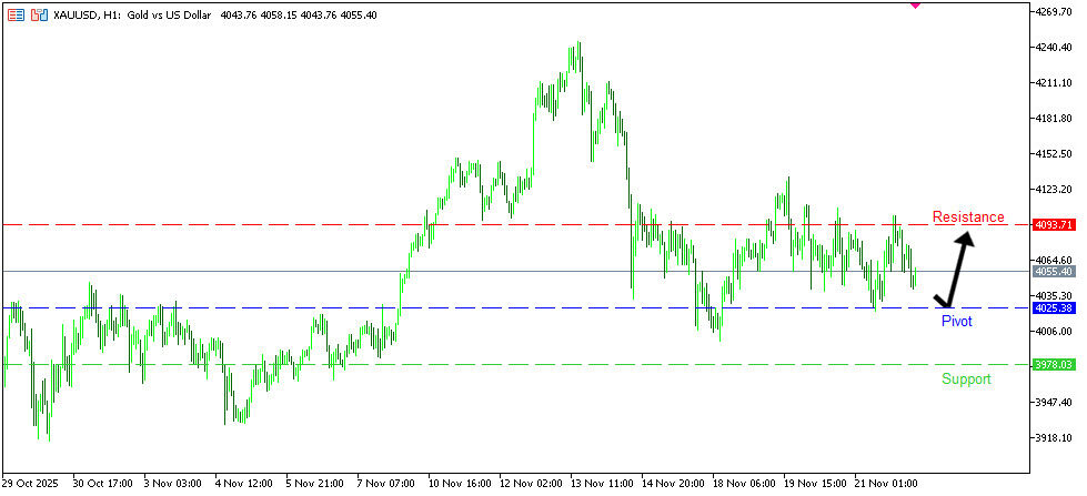 XAUUSD H1 | การรีบาวด์ขึ้นอาจเกิดจากโซนรับนี้ By Webmaster - November 24, 2025 14 0 Facebook Twitter Pinterest WhatsApp Email LINE วิเคราะห์ XAUUSD บนกราฟ H1 มีโอกาสรีบาวด์จากแนวรับทับซ้อนที่ 4,025.38 หากราคาดีดตัวขึ้น มีลุ้นไปทดสอบแนวต้านแรกบริเวณ 4,093.71 ซึ่งเป็นโซนต้านจากการย่อตัว แต่หากราคาหลุดต่ำกว่าแนวรับหลักดังกล่าว อาจอ่อนตัวต่อสู่โซนรับถัดไปที่ 3,978.03