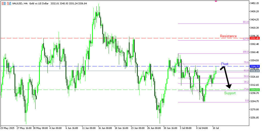 วิเคราะห์ XAUUSD กราฟ H4 ราคามีแนวโน้มกลับตัวลงจากแนวต้านที่ 3346.68 โดยมีเป้าหมายแนวรับที่ 3304.58 หากทะลุขึ้นไปได้ อาจขึ้นต่อถึงแนวต้าน 3392.45